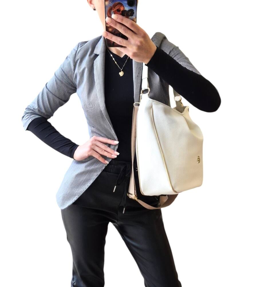 Praktická dámska biznis kabelka vhodná na každý deň do práce v skvelej béžovej farbe, ktorá sa hodí ku každému outfitu. Dokonale ladí k teniskám aj k elegantným topánkam. Súčasťou kabelky je aj praktická kozmetická taška na vaše poklady. K dokonalosti jej chýba už len dlhé prídavné ramienko a formát A4 na spisy a dokumenty – a to predsa má!!!