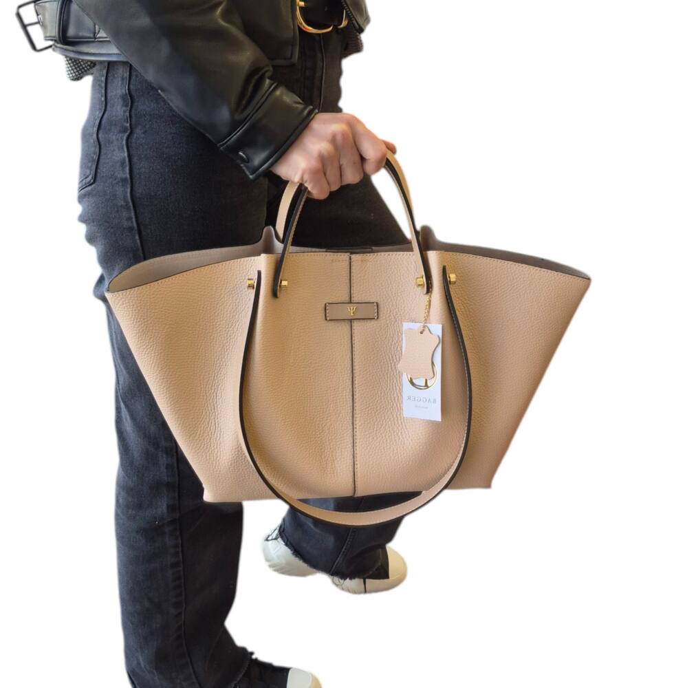 Biznis kožená elegantná kabelka v jemnej pudrovo ružovej farbe, ktorú musí mať doma každá dáma, ktorá miluje štýl a eleganciu.