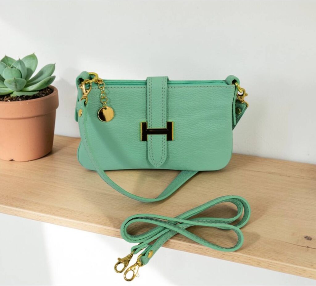 ​Sviežosť a pokoj. Svetlomodré listové kabelky a crossbody modelyideálne na letné svadby alebo večerné prechádzky mestom.