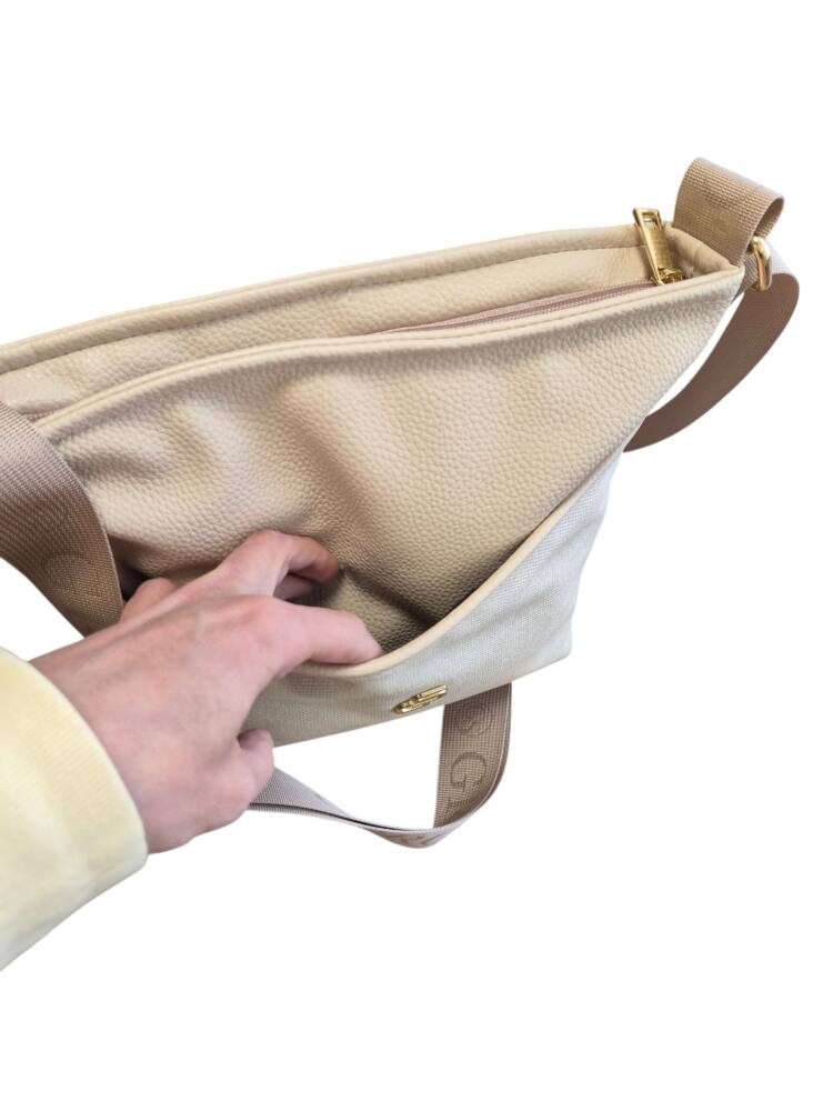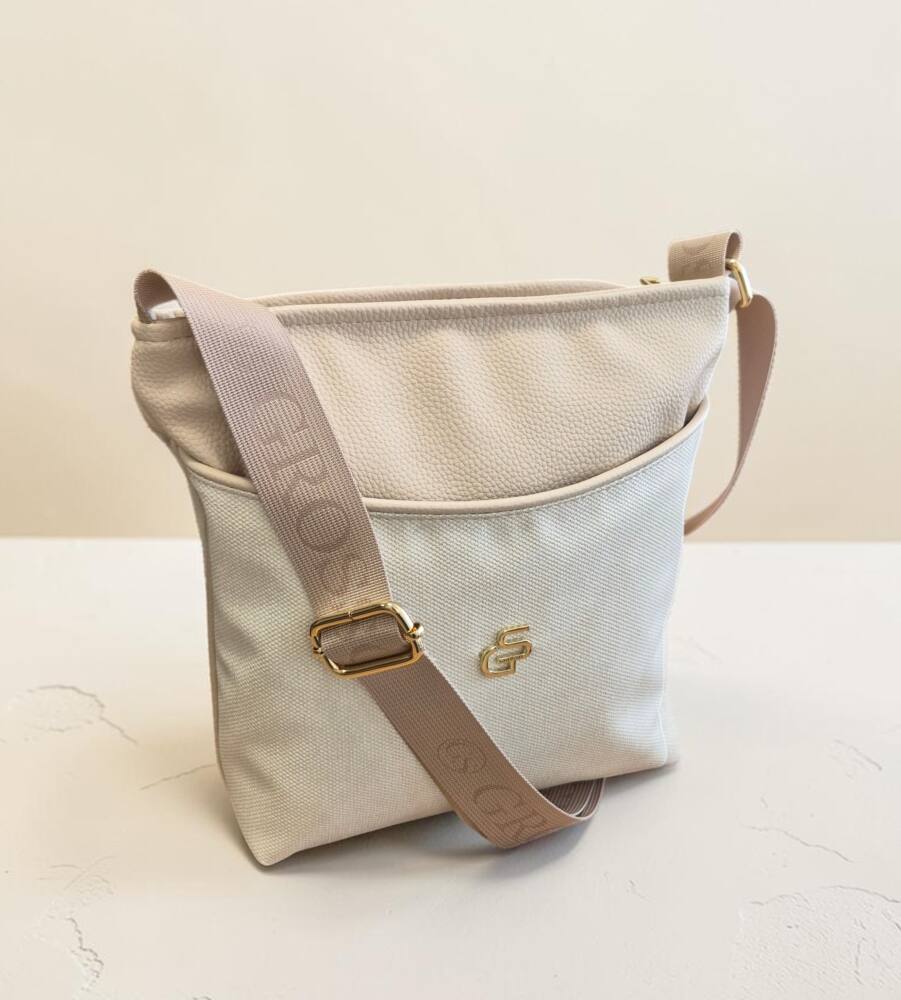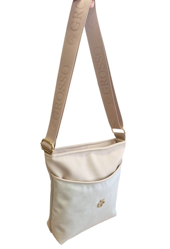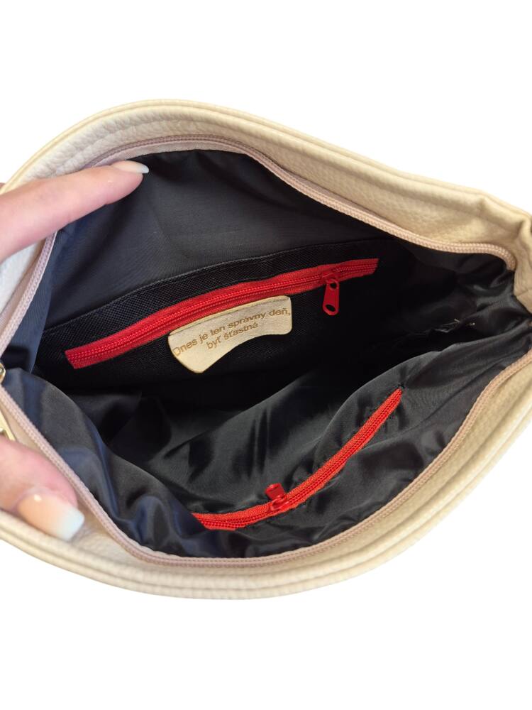 Dámska, praktická kabelka v elegantnej béžovej farbe s nastaviteľným ramienkom. Kabelka v menšej veľkosti, vhodná na každodenné nosenie, do práce, do mesta na kávu alebo na prechádzku či výlet. Elegantný dizajn a kvalitné spracovanie od značky GROSSO šitých na Slovensku.