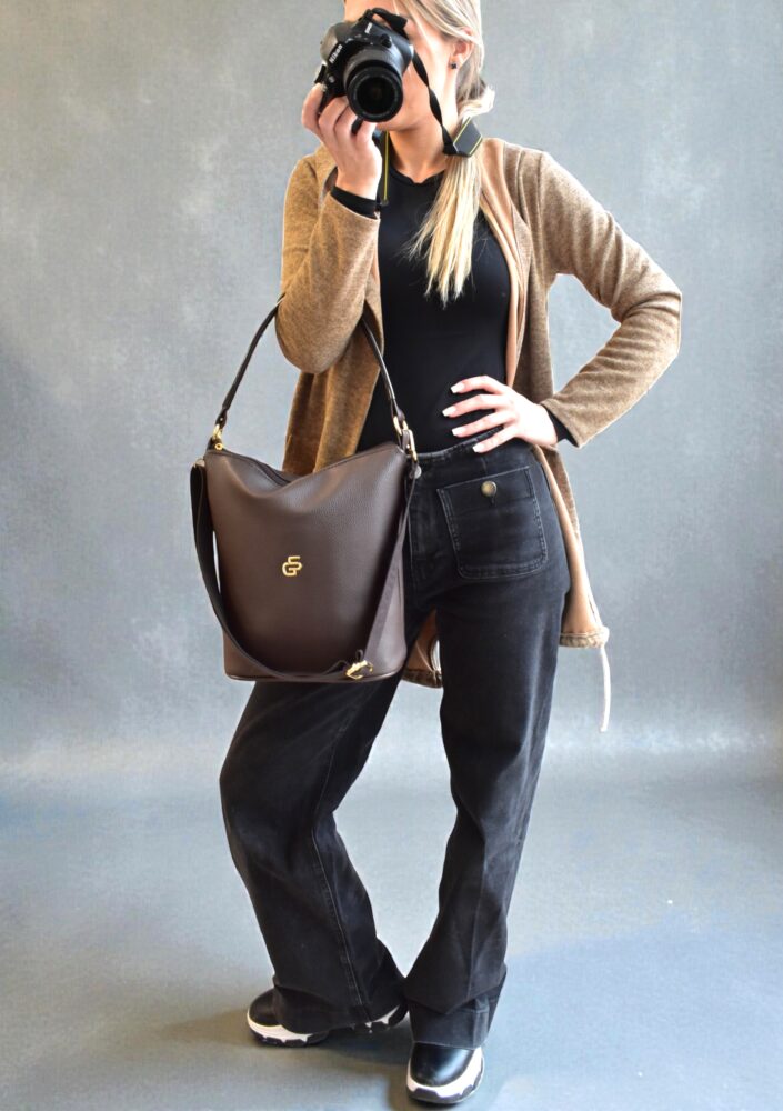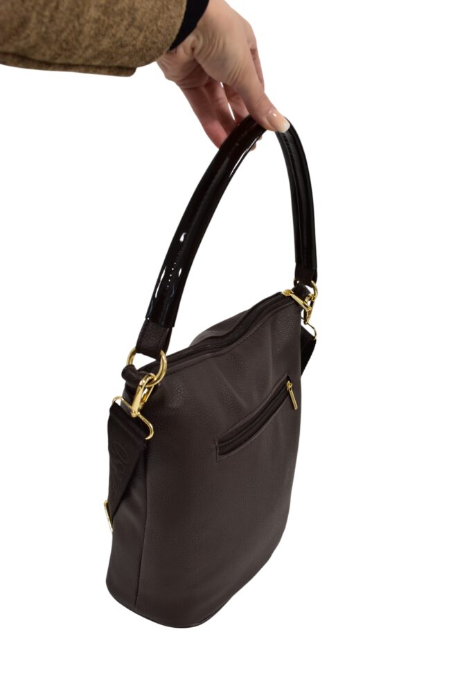 Dámska, praktická kabelka v elegantnej hnedej farbe s nastaviteľným ramienkom a jedným uškom do ruky na rameno. Kabelka v menšej veľkosti, vhodná na každodenné nosenie, do práce, do mesta na kávu alebo na prechádzku či výlet. Elegantný dizajn a kvalitné spracovanie od značky GROSSO šitých na Slovensku.