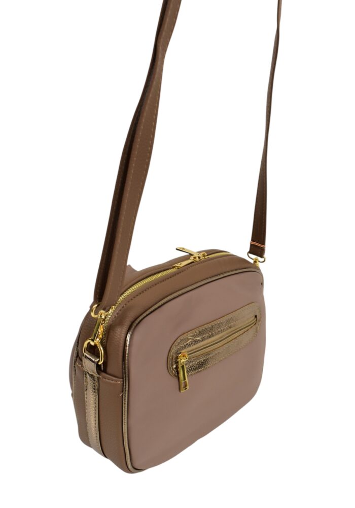 Športovo elegantná dámska kabelka v menšej veľkosti v krásnej béžovej farbe so zlatým kovaní. Kvalitné spracovanie a moderný dizajn vhodný na každý deň do školy, práce na výlety ale aj na spoločenskú udalosť.. Od značky GROSSO vyrábaných na Slovensku.