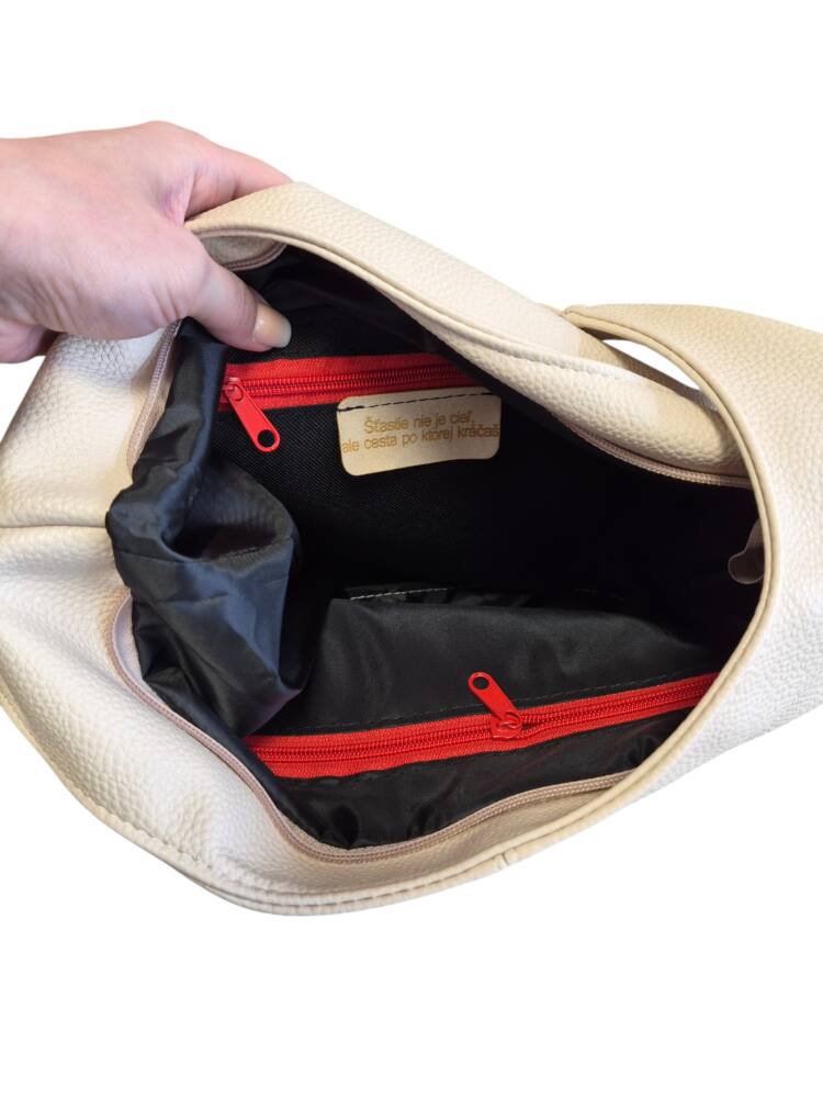 Vnútro (obsah): vrecká na drobnosti so zipsom + bez zipsu