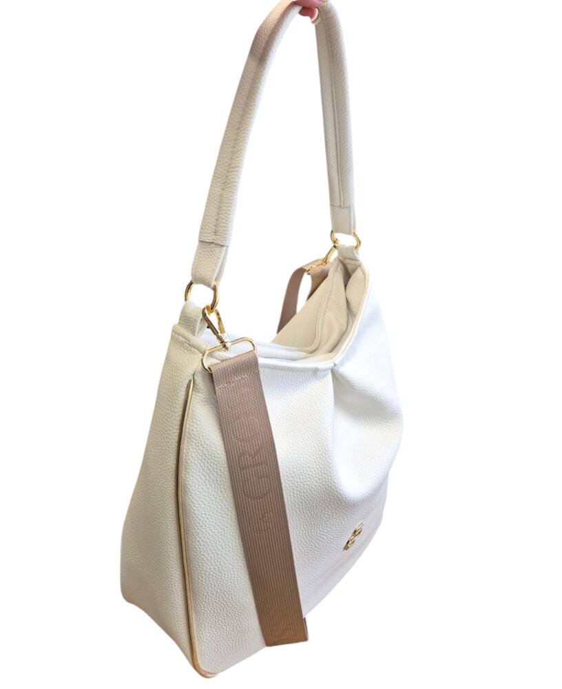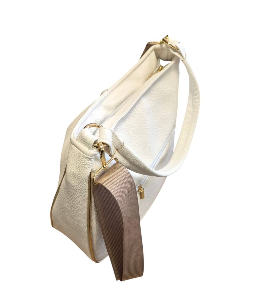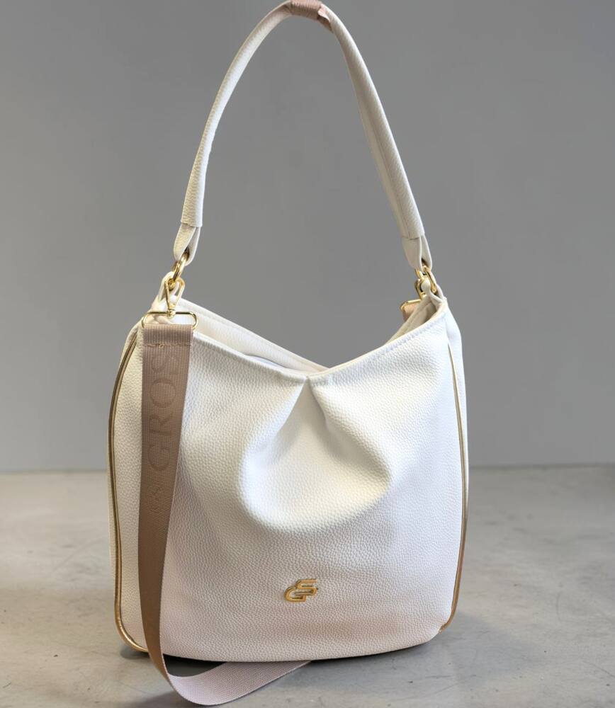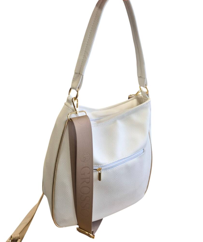 Praktická, športovo elegantná dámska shopper kabelka v bielo hnedej farbe s jedným uchom do ruky/na rameno. Ku kabelke je aj prídavné nastaviteľné ramienko na pohodlné nosenie krížom cez plece ako crossbody. Kabelka má množstvo úložného priestoru, vrecká so zipsom aj bez. Vhodná na každý deň do mesta, do práce ale aj na výlety k rôznemu štýlu oblečenia. Kvalitné spracovanie a moderný dizajn od značky GROSSO kabeliek šitých na Slovensku.