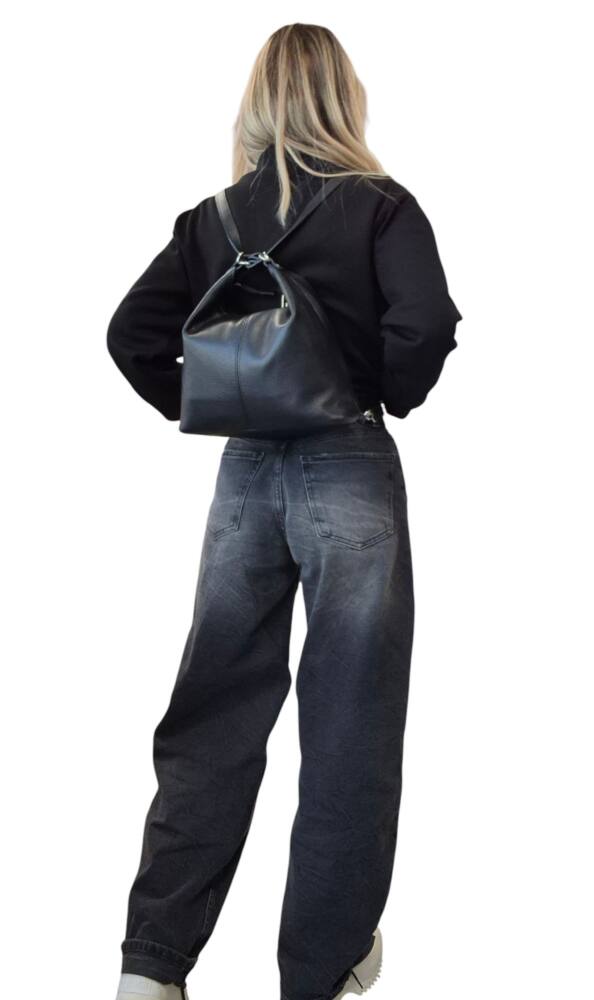 Dámska čierna kabelka a ruksak 2v1 koža ITALY