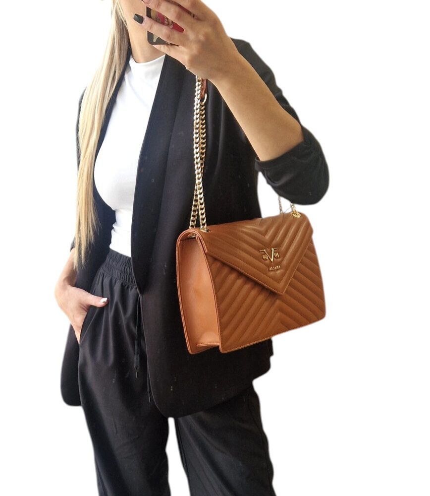 Štýlová dámska kabelka v strednej veľkosti v hnedej CAMEL farbe s dvomi ušami s retiazkou. Vhodná do práce alebo na bežnejší deň k športovo elegantnému oblečeniu. Kabelka je v štýle aktovky s dvomi ušami na rameno ktoré sa dajú presunúť na jedno dlhšie ramienko, čiže ju môžete nosiť aj ako crossbody. Krásny elegantný dizajn a moderný štýl. Ku kabelke je aj ochranné puzdro na bezpečné uloženie so skrini.