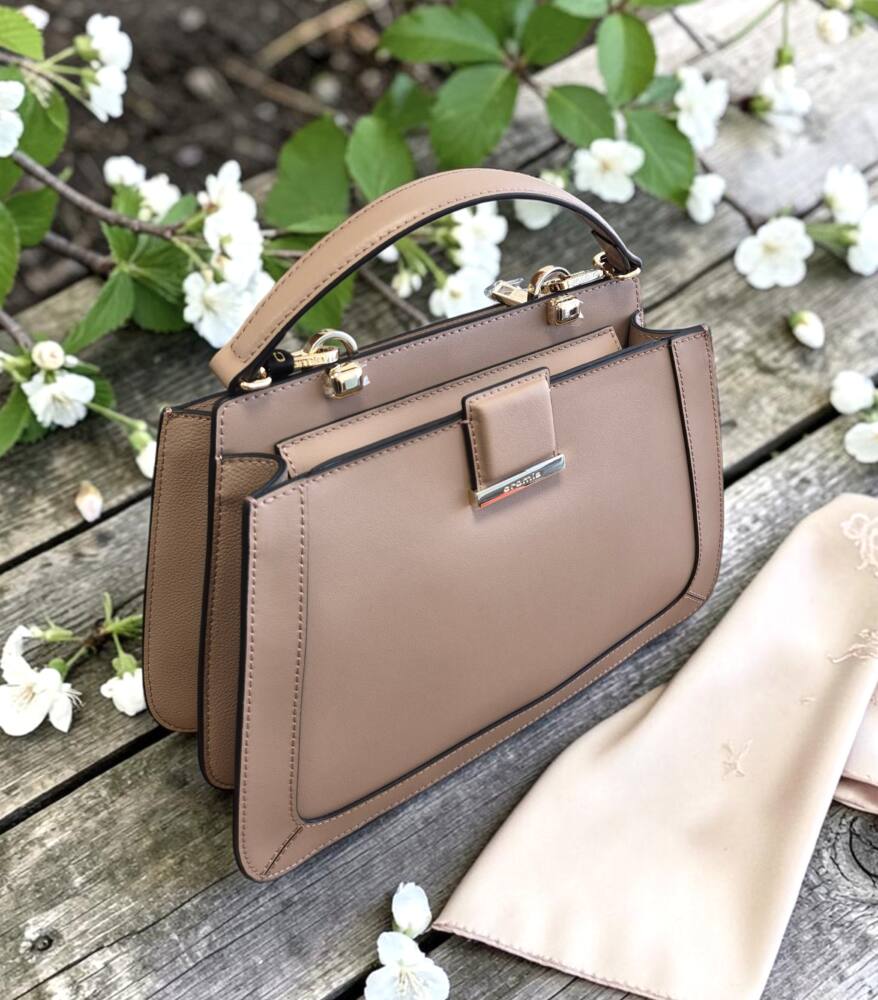 Elegantná dámska kabelka v krásnej hnedo ružovej nude farbe so zlatým kovaním a prídavným ramienkom. Vhodná k elegantnejšiemu oblečeniu do práce ale aj do spoločnosti. Ikonická kabelka ktorá rozžiari celý váš outfit. Stredná veľkosť kabelky so zlatým kovaním a zapínaním. Kvalita z Talianskej dielni.