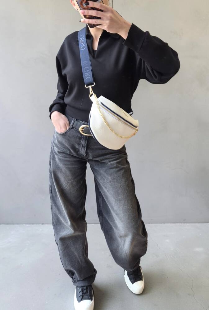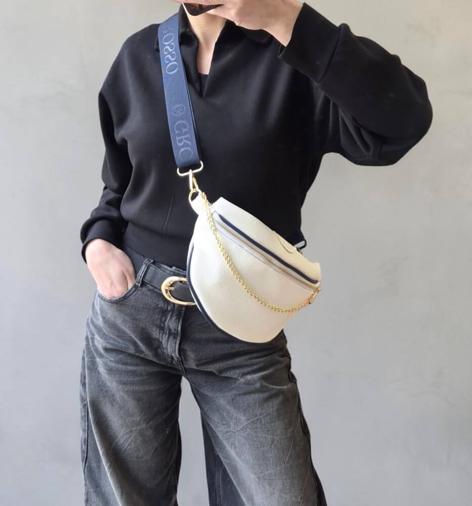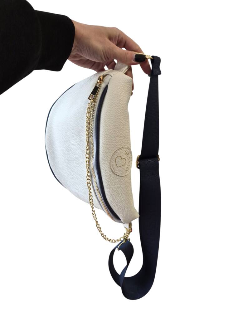 Športovo elegantná dámska ľadvinka menšia v bielo modrej farbe so zlatým kovaním. Vhodná na každý deň k rôznemu štýlu oblečenia nakoľko je športovo elegantná. Vhodná aj na dovolenky a výlety keď potrebujete mať základné veci pri sebe. Moderný dizajn a kvalitné spracovanie.