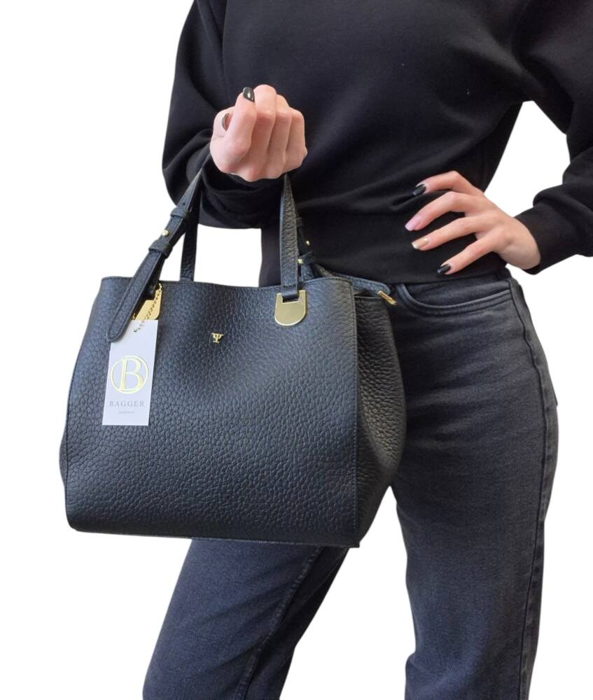 Elegantná čierna kožená kabelka do ruky BAGGER