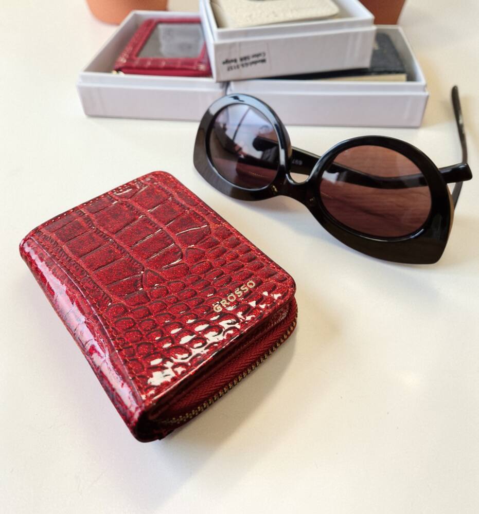 Lakovaná červená malá kožená peňaženka GROSSO + Trblietky