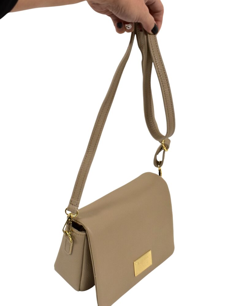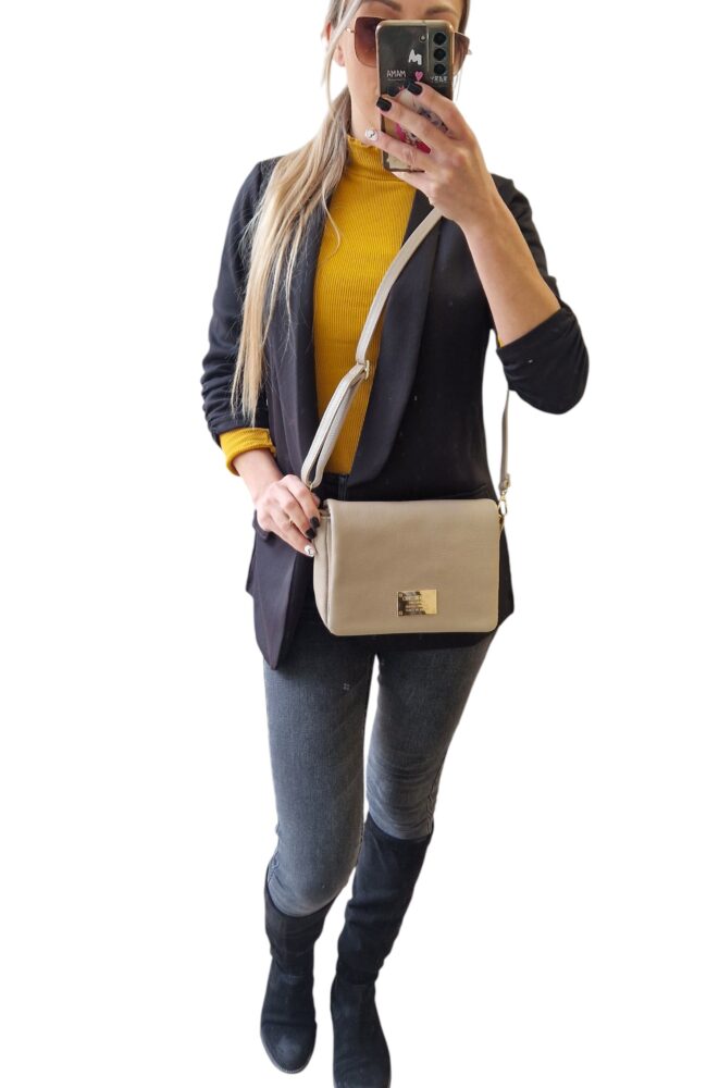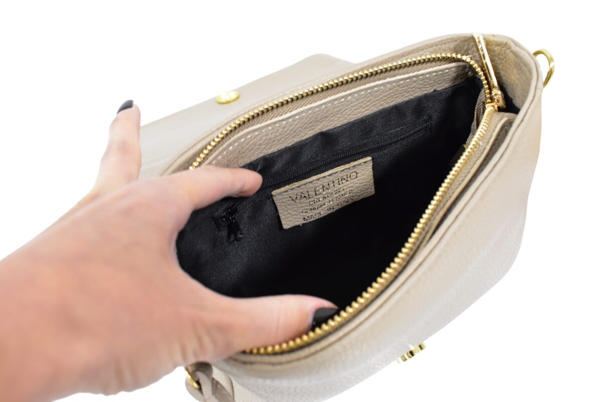 Štýlová, športovo elegantná dámska kabelka v elegantnej krémovej farbe na rameno či ako crossbody. Vhodná na každý deň k rôznemu štýlu oblečenia ale aj do spoločnosti k elegantnému štýlu outfitu. Menšia veľkosť so zlatým kovaním a vreckom na zips. Kvalitné spracovanie talianskej kože od značky Valentino creations.