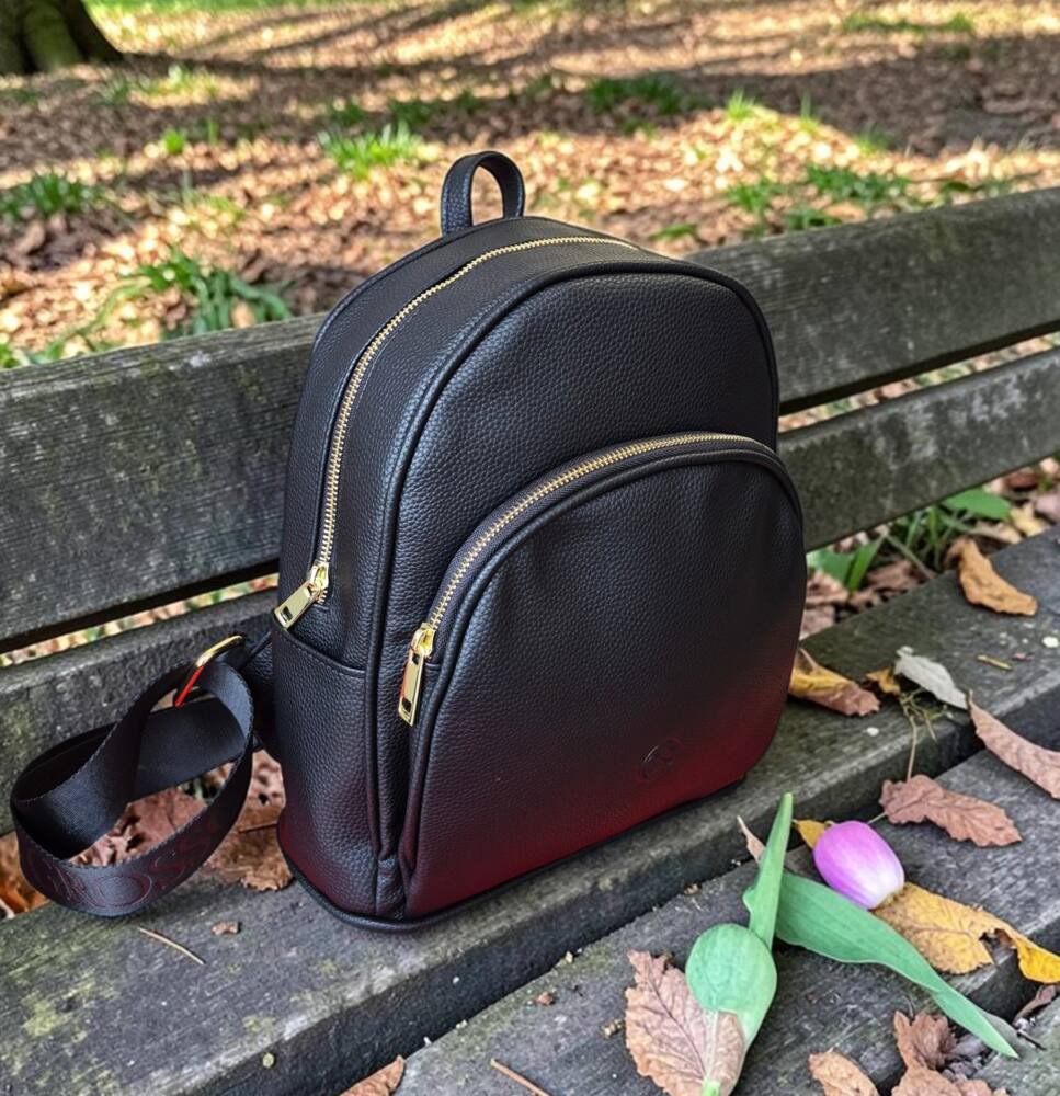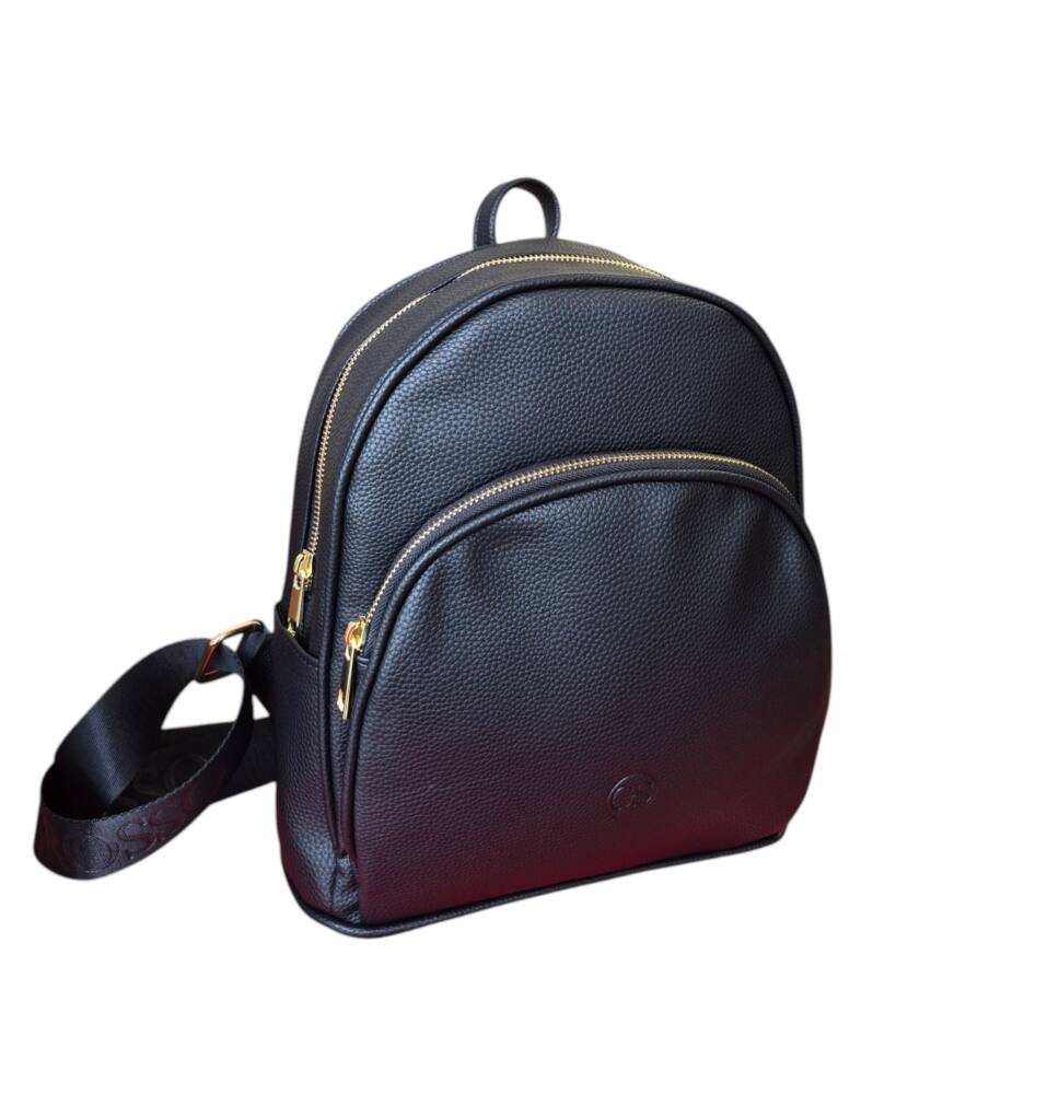 Športovo elegantný dámsky batoh v strednej veľkosti v čiernej farbe. Vhodný na každodenné využitie do práce do mesta na výlet či na dovolenku. Moderný dizajn s množstvom úložného priestoru od značky GROSSO, šitej na Slovensku. Vak ku každému štýlu oblečenia.