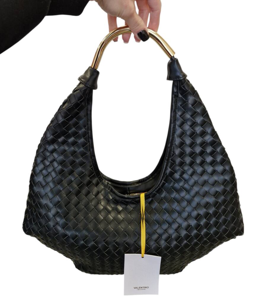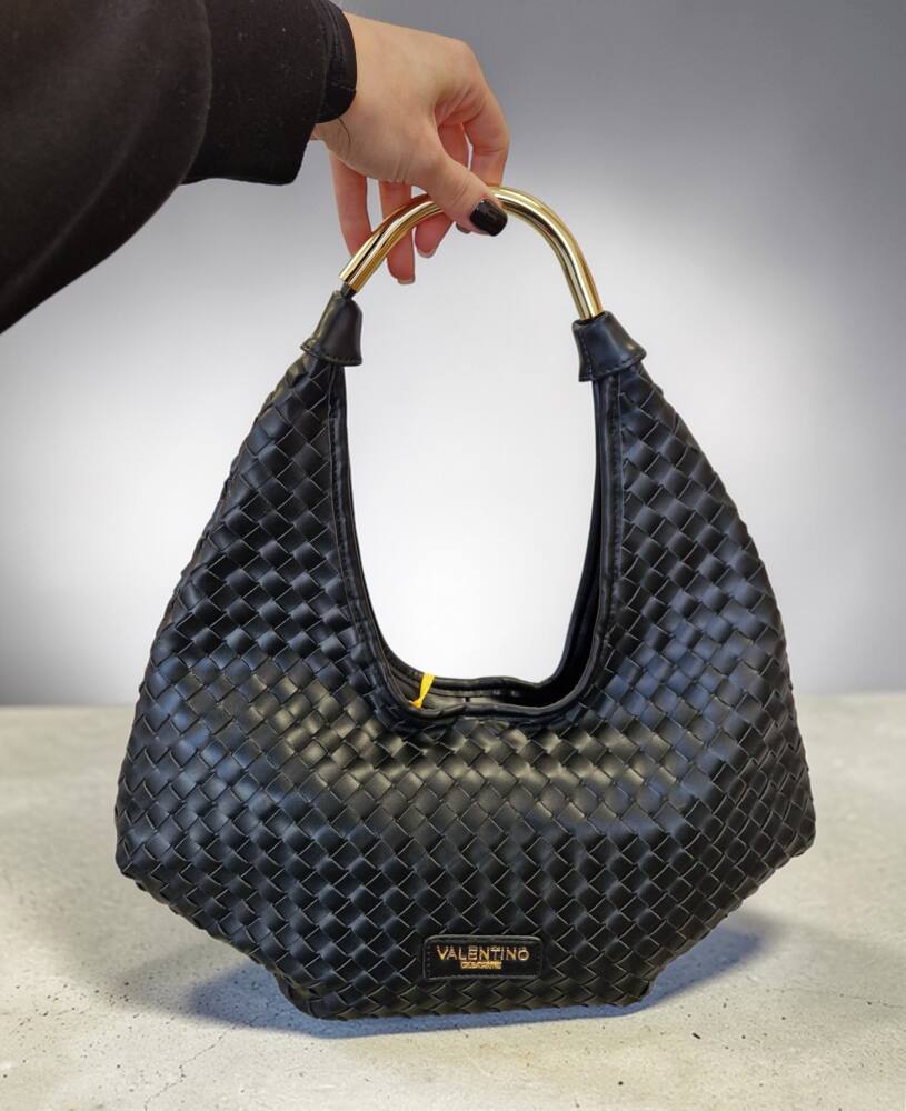 Prepletaná dámska moon kabelka na rameno čierna VALENTINO CREATIONS