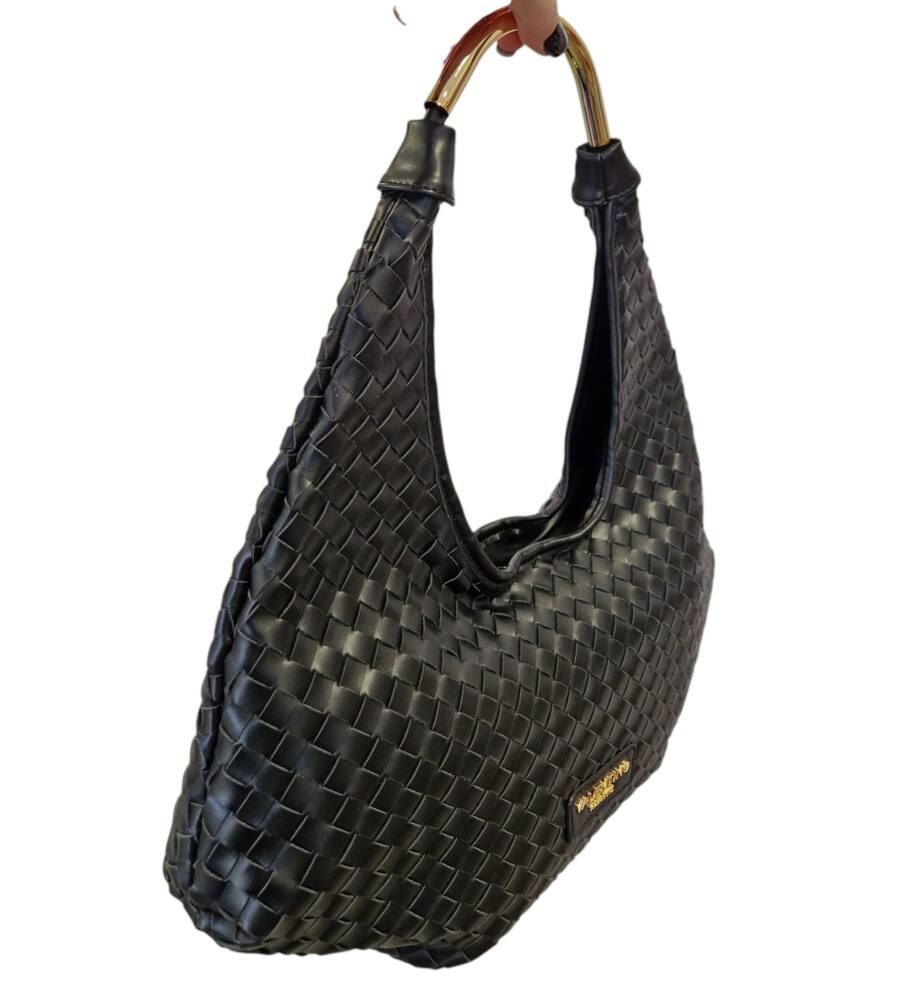 Prepletaná dámska moon kabelka na rameno čierna V7