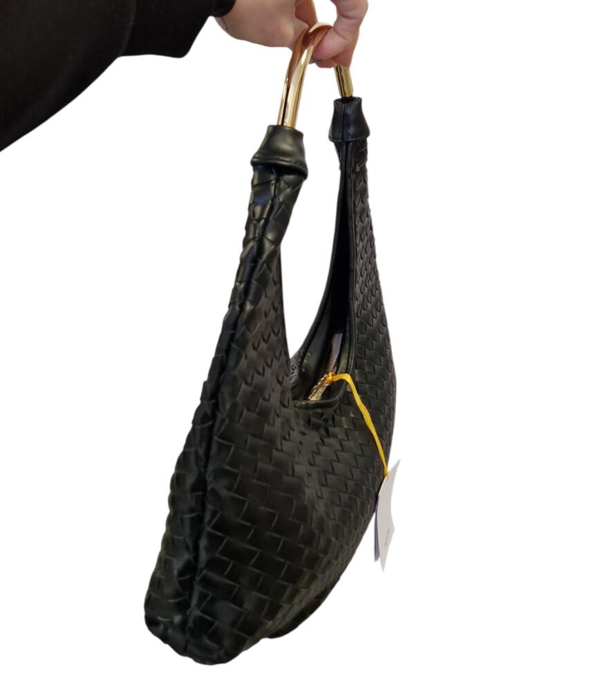 Štýlová, nadčasová kabelka na Jar/Leto v prepletanom dizajne v tvare polmesiaca v čiernej farbe. Športovo elegantná kabelka na každý deň k rôznemu štýlu oblečenia. Či už si dáte sandále, tenisky, šaty či rifle sadne vám perfektne. Ikonické ramienko s kovovou ozdobou. Stredná veľkosť, moderný dizajn a kvalitné spracovanie.