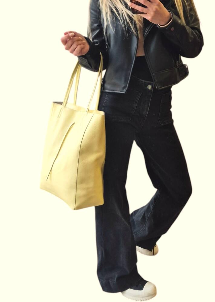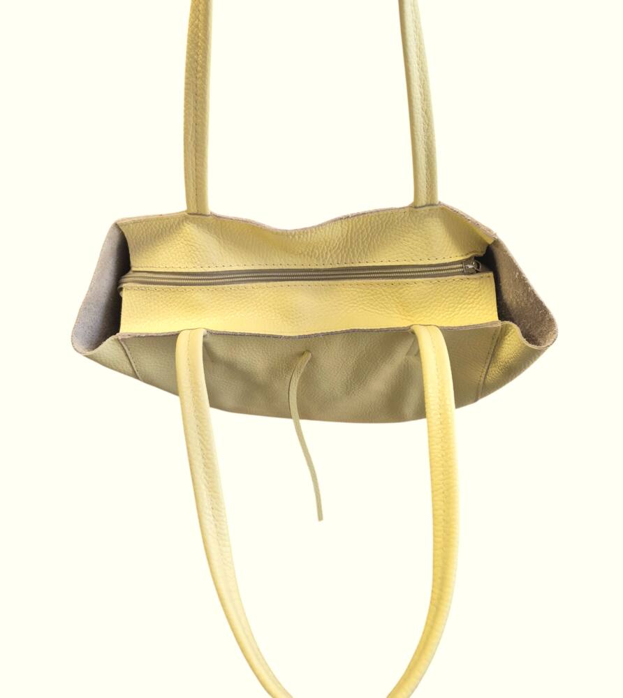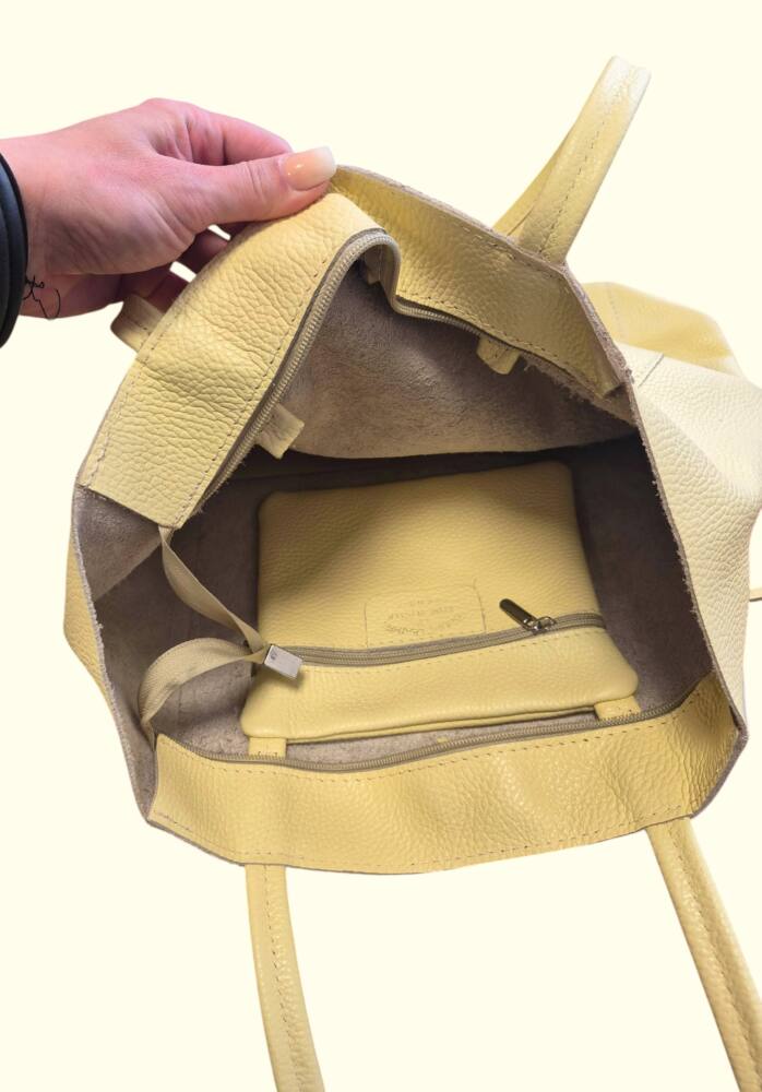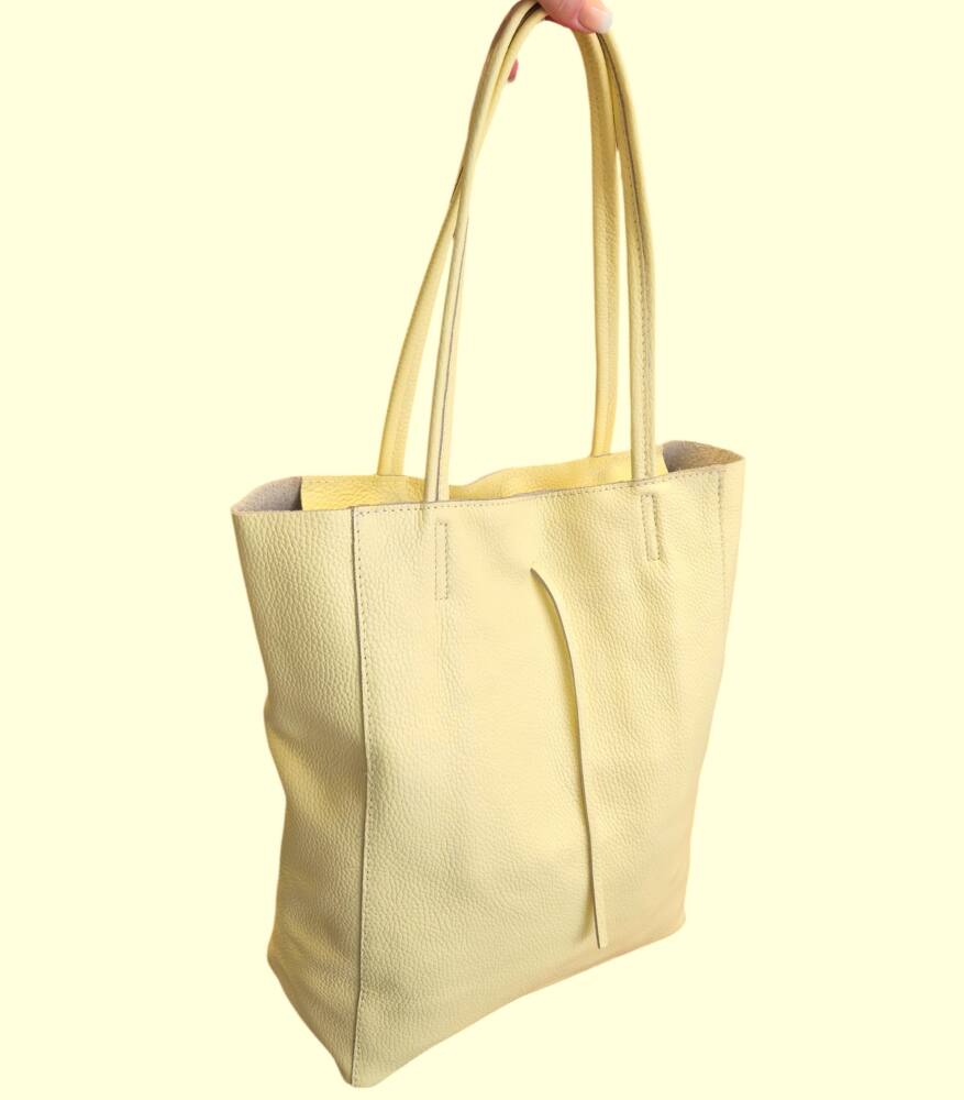 Praktická športovo elegantná dámska kabelka na rameno v jemnej bledo žltej (vanilkovej) farbe do ruky na rameno. Perfektný a praktický módny doplnok pre dámy, ktoré majú rady pohodlné kúsky. Vhodná na každý deň do práce či a výlet. Skvele sa hodí k teniskám ale aj sandálom na leto či šatom. Veľkosť A4 pohodlne sa nosí vďaka svojmu tvaru a mäkkej koži. Vnútro kabelky obsahuje vrecko na drobnosti na zips. Praktický a moderný dizajn a kvalitné spracovanie. MADE IN ITALY.