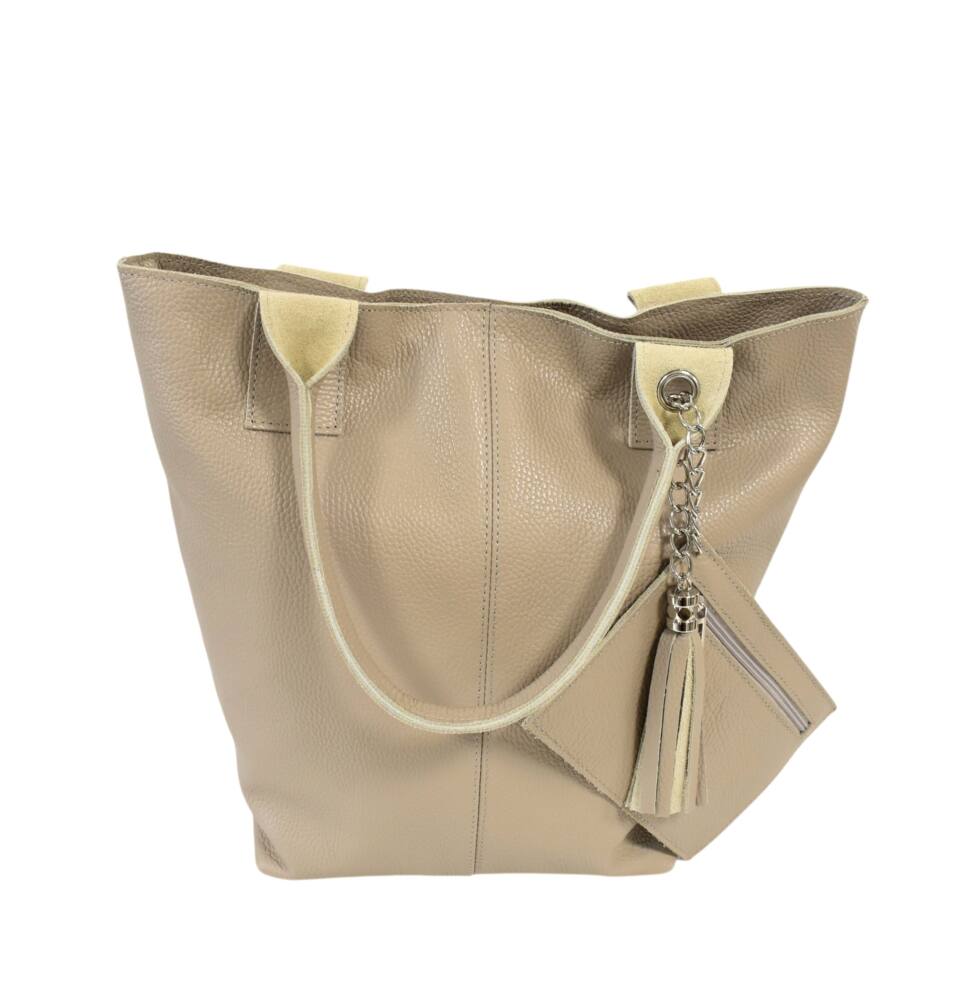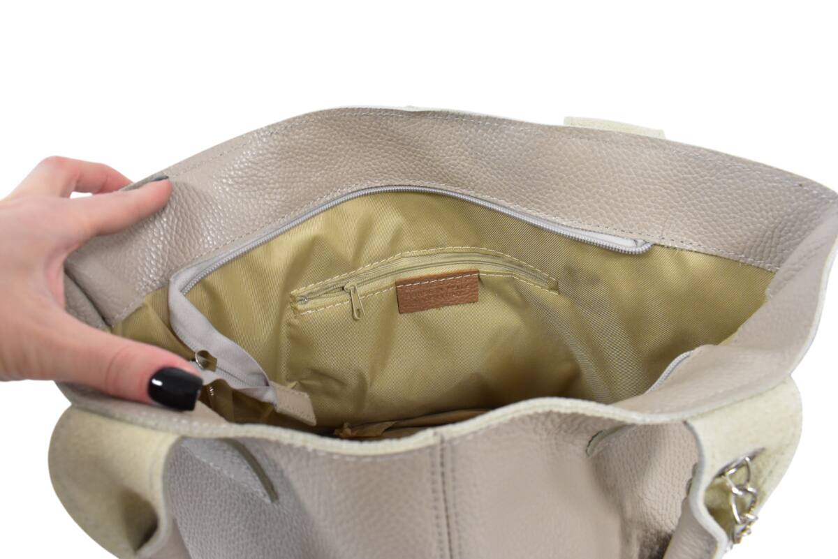 Veľká dámska shopper kožená kabelka béžová ITALY