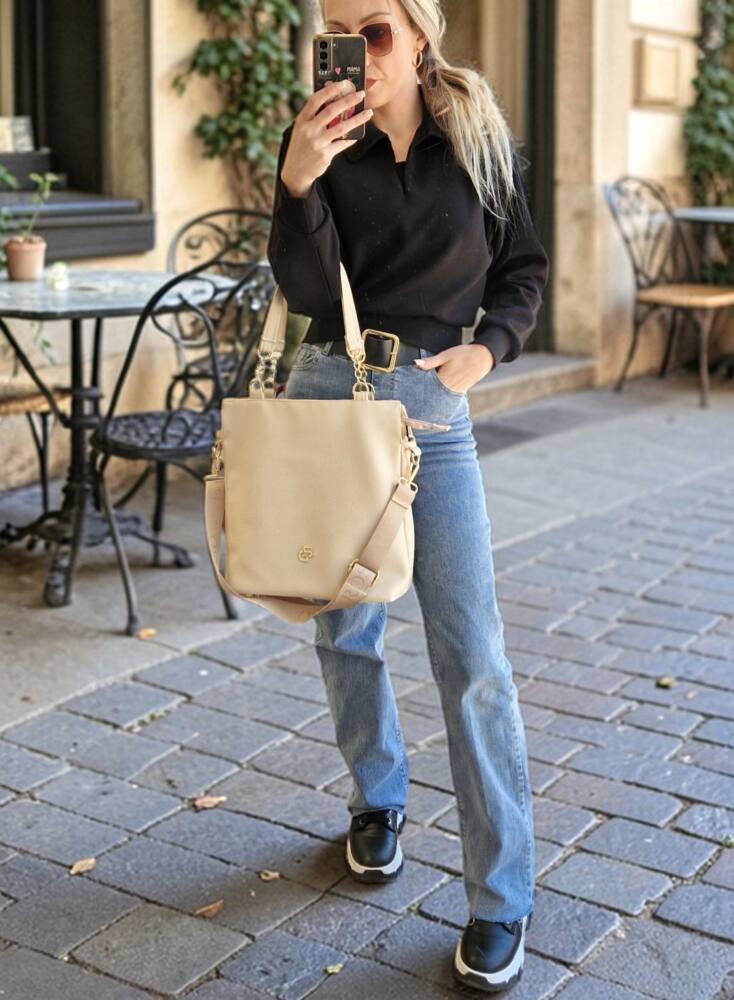 Presným opakom mini kabeliek sú veľké shopper modely, ktoré ponúkajú dostatok priestoru a zároveň vyzerajú veľmi štýlovo. Pretože my ženy radi nosíme v kabelke celý náš svet. 🙂
