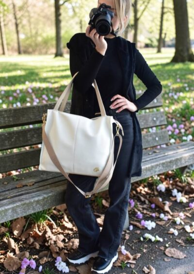 Vnútro (obsah): vrecká na drobnosti + malá crossbody kabelka (kozmetická taška) na zips – ktorú môžete nosiť aj zvlášť ako crossbody kabelku